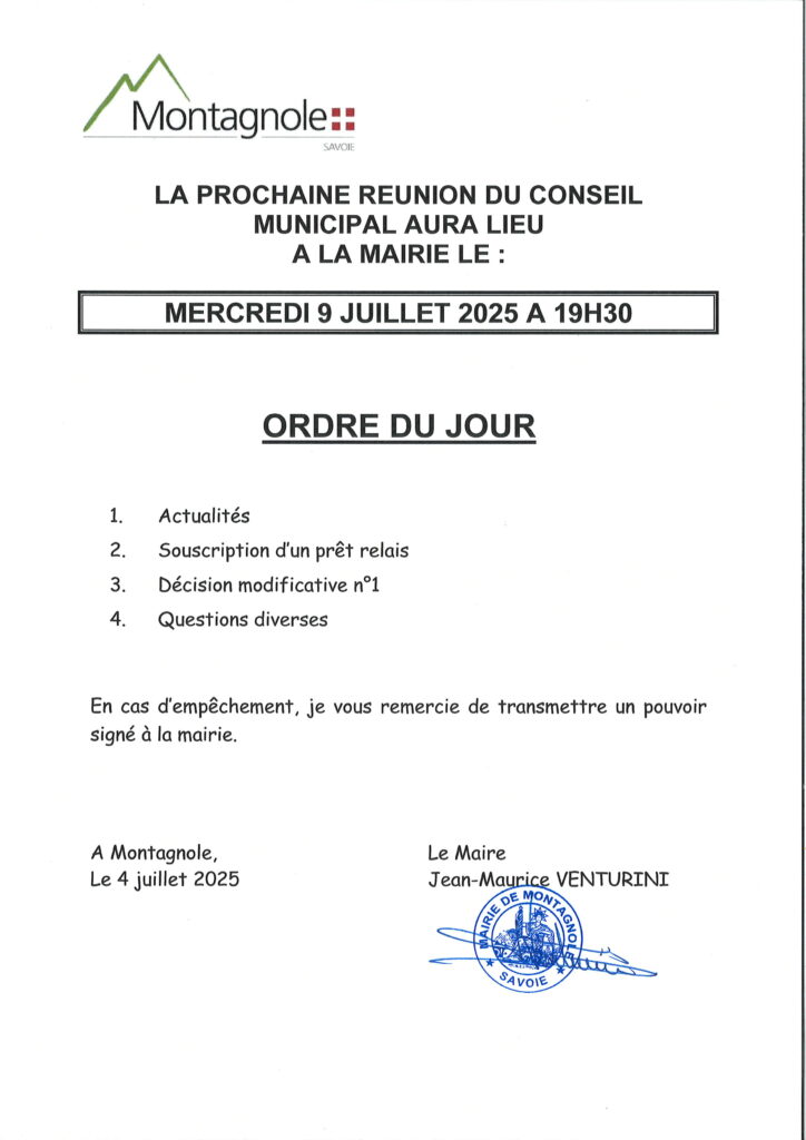 Le prochain conseil municipal aura lieu le lundi 15 décembre 2025 à 19h30 salle du Conseil municipal