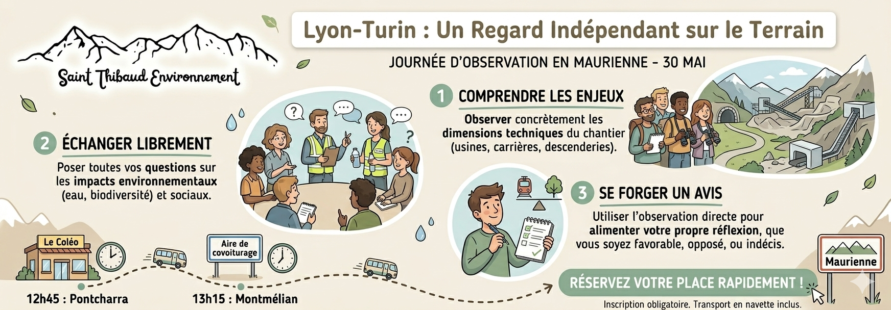Pourquoi participer ?📍Comprendre les enjeux : Visualiser concrètement les dimensions techniques du chantier.🤝Échanger librement : Des intervenants seront présents pour répondre à vos questions sur les aspects environnementaux et sociaux.📋Se forger un avis : Une approche basée sur l’observation directe pour alimenter votre propre réflexion.